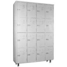 Armário em Aço para Vestiário, com 16 portas, pitões para cadeado e ventilação nas portas. Medidas: Altura: 1,97 m - Largura 1,23 m - Profundidade: 0,40 m Pintura Epoxi na Cor Cinza. COM PITÃO PARA CADEADO TEMOS TAMBÉM COM FECHADURA
